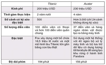Bảng so sánh Avatar và Titanic