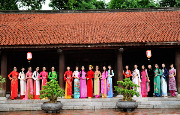 | Các thí sinh khoe nét rạng ngời tại Văn Miếu. |