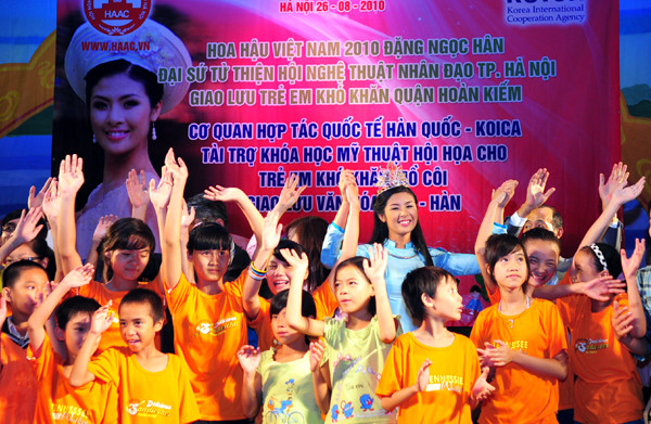 Ngay trong lần xuất hiện đầu tiên với vai trò Đại sứ từ thiện, HHVN Ngọc Hân đã dành nhiều thời gian bên các em nhỏ có hoàn cảnh khó khăn quận Hoàn Kiếm để nói chuyện, chụp hình kỉ niệm, ký tặng… Phần quà có giá trị là một chiếc ti vi và nhiều những quyển sách ý nghĩa cũng được cô gửi tới các em.