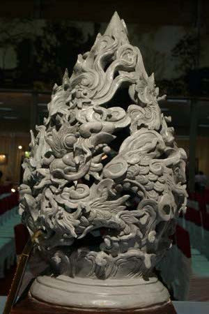Tác phẩm “Tứ linh quần tụ” được làm bằng vôi và giấy