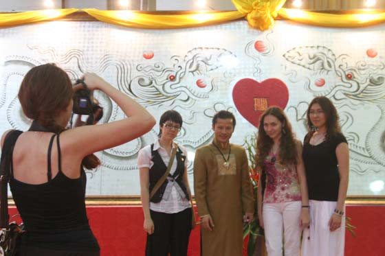 Nhiều du khách nước ngoài đên thăm quan và chụp hình lưu niệm bên các tác phẩm
