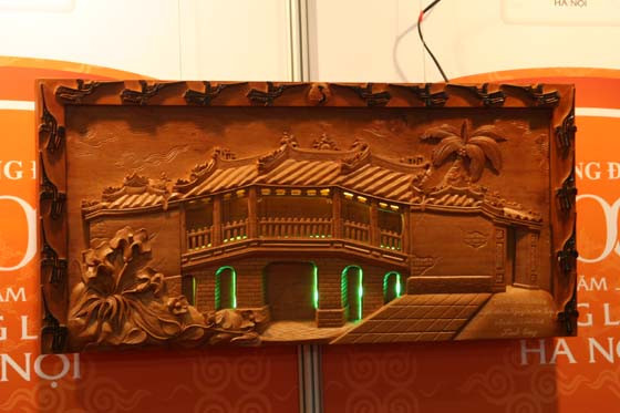 Triển lãm còn nhận được quà từ những người bạn nước ngoài. Trên là bức thư pháp “Thăng Long Hà Nội nguyễn viễn lưu trường” (ngụ ý Thăng Long – Hà Nội lâu đời, mãi mãi trường tồn, hướng tới tương lai) của tác giả Vi Xương Nghị (thành viên Hội thư pháp Trung Quốc)