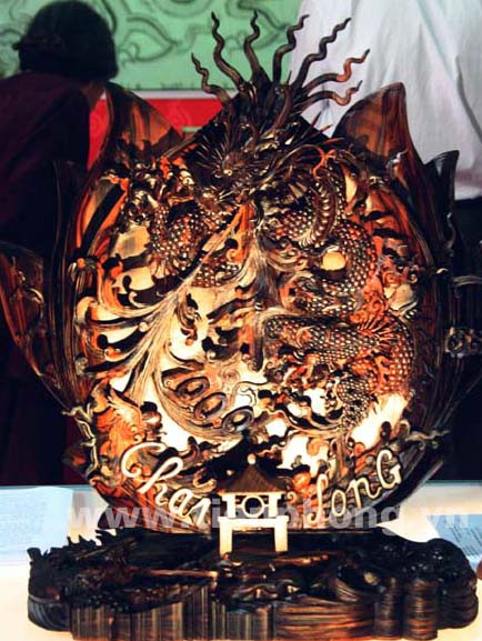 Tác phẩm điêu khắc “Âm hưởng Thăng Long” bằng gỗ Mun Vân Hoa, kích thước của tác phẩm 55 x 50 cm