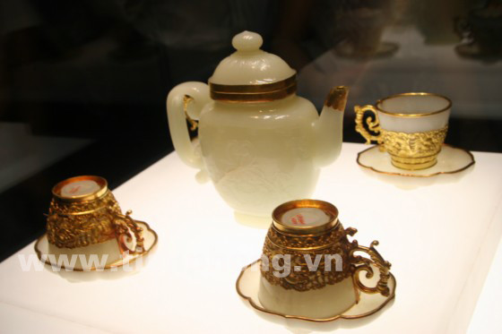 Bộ ấm chén ngọc có bọc vàng, trọng lượng 776 Gr