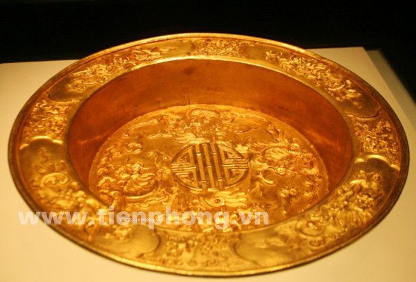 Chậu vàng, đúc năm Duy Tân thứ 5 (1911). Trọng lượng 1400 Gr