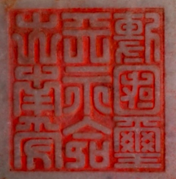 Ấn ngọc “Đại Nam thụ thiên vĩnh mệnh truyền quốc tỷ” (mặt trên và mặt chữ)