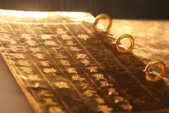 Những dòng chữ tuyệt đẹp trong sách vàng, đúc năm Gia Long thứ 5 (1806). Trọng lượng 2100 Gr.