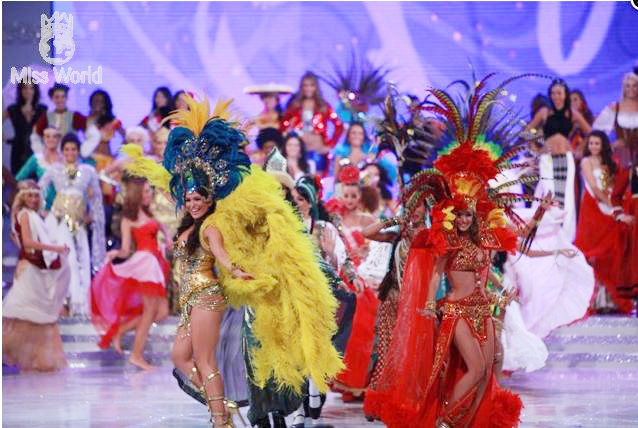 Các thí sinh trong trang phục dân tộc khai mạc Miss World 2010