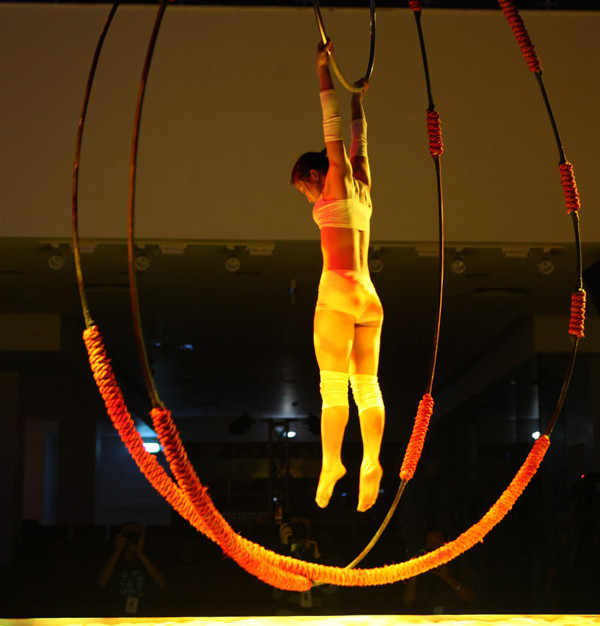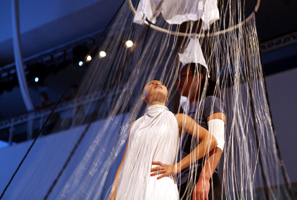 Các nghệ sĩ xiếc tập luyện cùng chiếc kén.