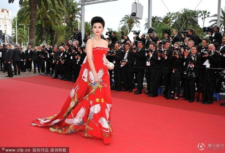 | Chiếc váy rồng phượng Phạm Băng Băng diện ở LHP Cannes năm ngoái. |