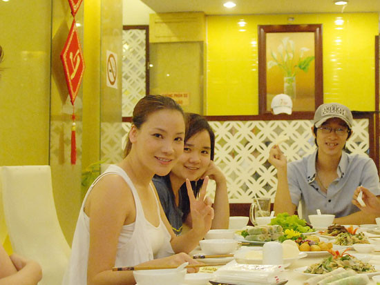 Sau những lúc luyện tập mệt mỏi, Hồ Quỳnh Hương cùng ê-kíp rủ nhau đi ăn chay.