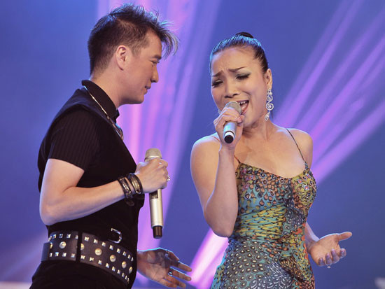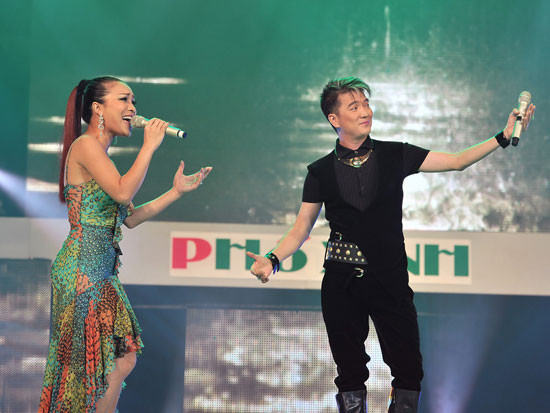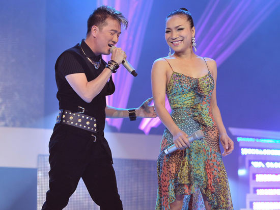 Hồng Ngọc cùng Đàm Vinh Hưng trên sân khấu giống như một cặp "trai tài, gái sắc", lúc nhẹ nhàng, lãng mạn, lúc cao trao sôi động làm sân khấu Lan Anh như muốn nổ tung.