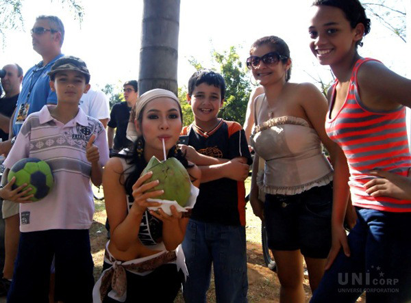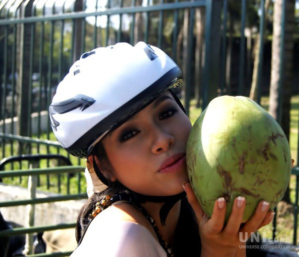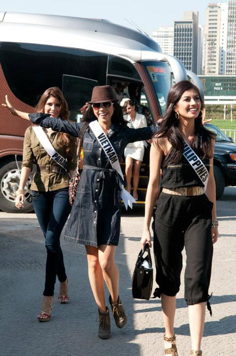TPO – Đại diện Việt Nam diện một bộ trang phục thể thao rất năng động và khỏe khoắn để tham gia cuộc đua xe đạp cùng các thí sinh cuộc thi Hoa hậu Hoàn vũ 2011 đang diễn ra tại São Paulo, Brazil.