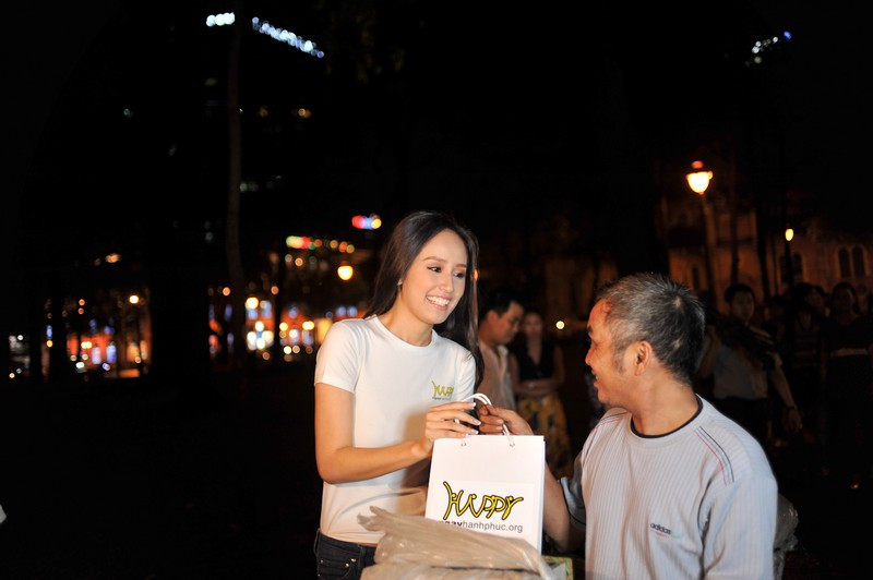 Bộ 3 người đẹp Hoa hậu Mai Phương Thuý, Ngọc Diễm và Khánh My trong vai trò đại sứ thiện chí đã mặc áo thun Ngày Hạnh Phúc đi phát quà để thực hiện bộ hình quảng bá, kêu gọi mọi người ủng hộ buổi phát quà từ thiện chính thức vào tối 12-9 tới đây.