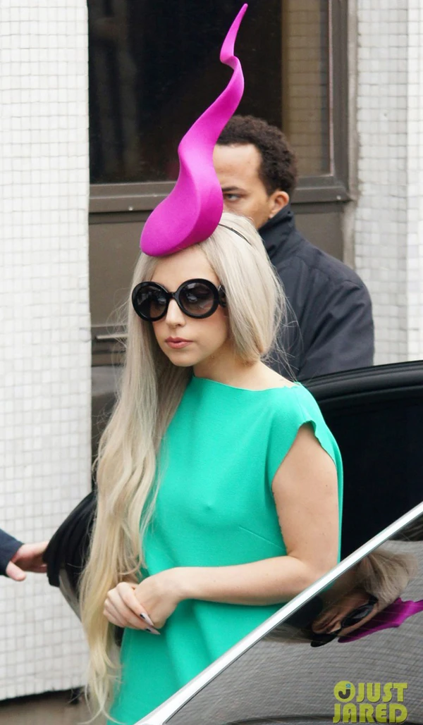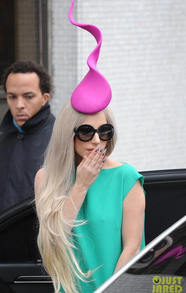 Công chúng không xa lạ gì với những chiếc mũ đội đầu thuộc hàng 'khủng' của Lady Gaga, cô từng mang trên đầu những chiếc mũ khổng lồ có hình dáng một bông hoa cỡ bự, khi thì hình chiếc điện thoại bàn, thậm chí có lúc là cả một con tôm hùm to kềnh càng.