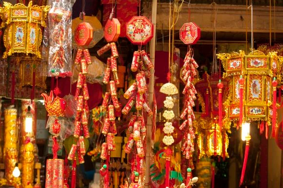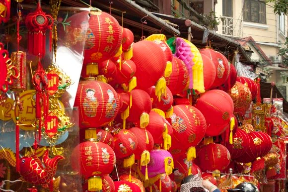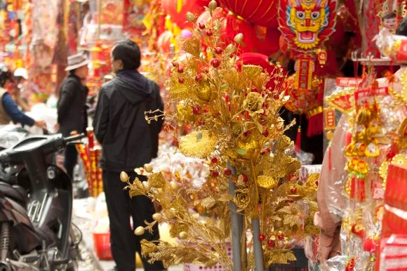 Những bao lì xì, đèn lồng, pháo hoa trang trí cũng được bày bán dọc phố Hàng Mã. Bánh kẹo trên phố Hàng Đường cũng đa dạng hơn mọi năm, nhưng năm nay, không còn nhiều cảnh chen lấn để mua hàng như những năm trước.