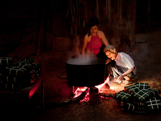 Nhân dịp Tết Nguyên đán, Hoàng My gửi đến độc giả những khoảnh khắc làm bánh chưng và bánh tét – hai thứ bánh của hai miền Nam-Bắc rất bình dị, mộc mạc nhưng sâu lắng được Hoàng My, nhiếp ảnh gia Đặng Minh Tùng và cả ê-kíp về Bến Tre thực hiện với sự hỗ trợ nhiệt tình của những người dân nấu bánh quanh năm nơi đây.