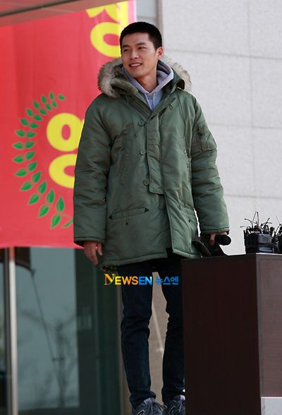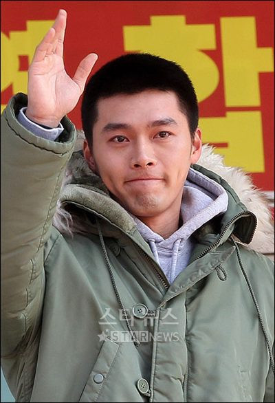 Bạn gái của Hyun Bin là nữ diễn viên Song Hye Kyo đã không thể có mặt tại trại huấn luyện để chào người yêu do cô đang bận rộn quay phim “Today”.
