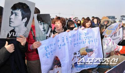 Ngay từ sáng nay 7/3, mặc dù trời khá lạnh nhưng rất đông các fan đã có mặt ở trại huấn luyện Segyeri mang theo nhiều băng rôn và hình ảnh của Hyun Bin với những lời chúc thần tượng lên đường may mắn. Tại đây, anh sẽ bắt đầu 5 tuần rèn luyện đầu tiên ở Hải quân lục chiến trong thời gian 21 tháng quân ngũ. Dự kiến anh sẽ xuất ngũ vào ngày 6/12 năm sau.