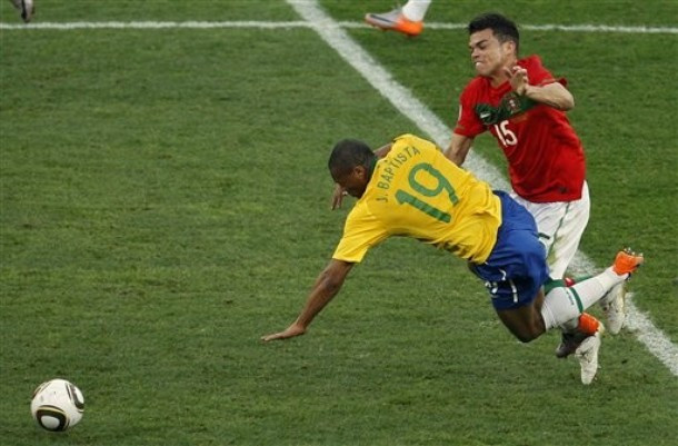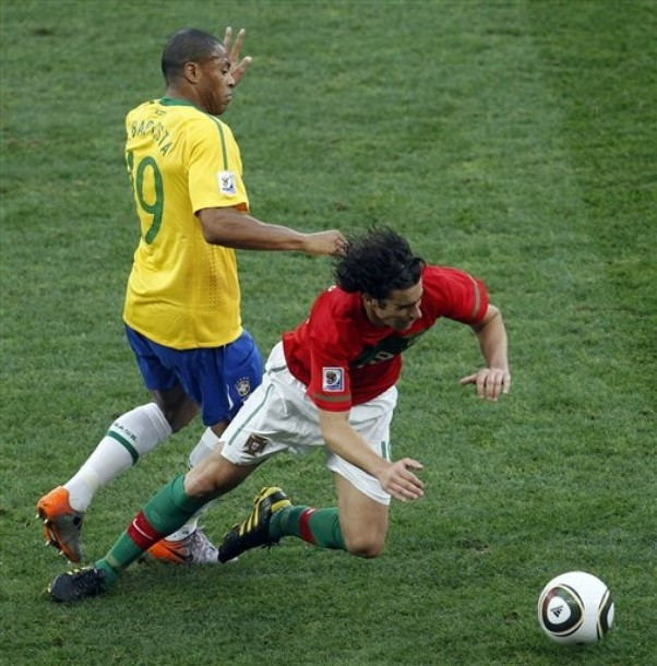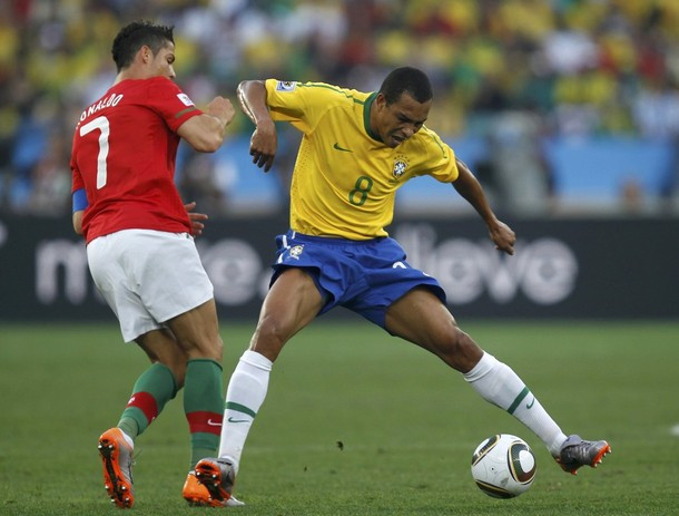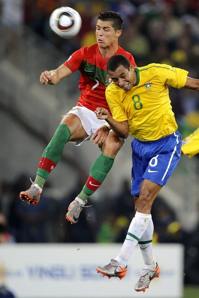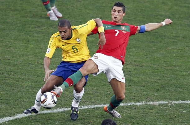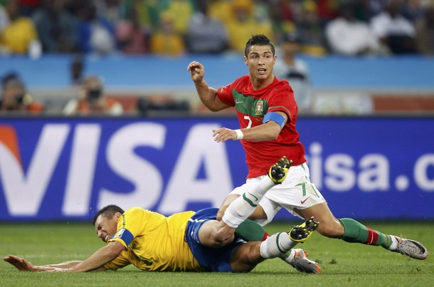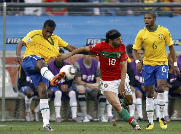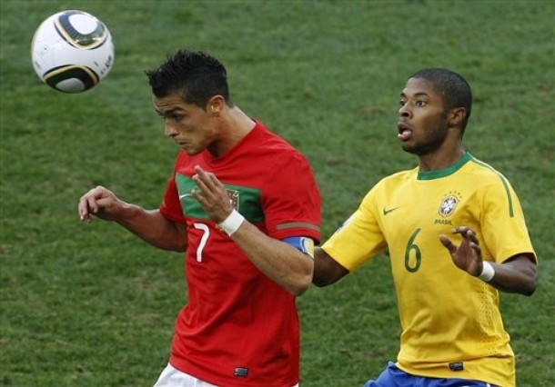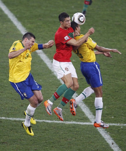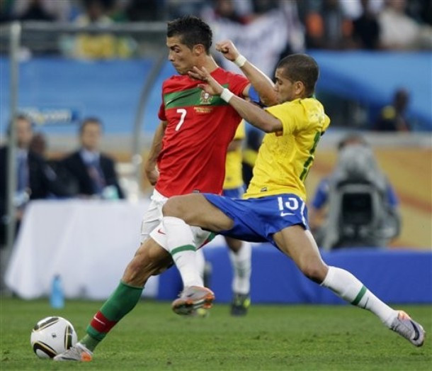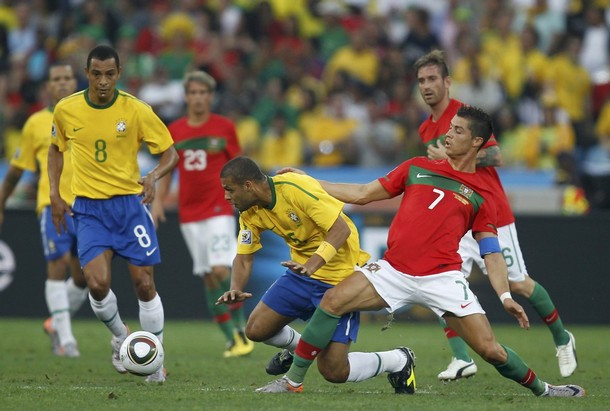 Cầu thủ ngôi sao trong đội hình Bồ Đào Nha, Cristiano Ronaldo (số 7) không thể hiện được nhiều trước lối đá khoa học, chắc chắn của Brazil.