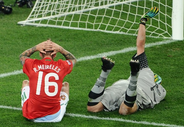 Phút 59, từ pha đi bóng bên cánh phải của Ronaldo, Lucio phá bóng đến chân Raul Meireles nhưng tiền vệ này đưa bóng đi chệch cột dọc.