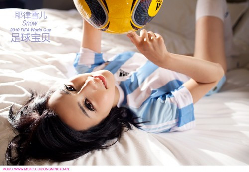 TPO - Mặc bộ áo thi đấu tuyển Argentina cách điệu hết sức gợi cảm, người mẫu Trung Hoa Dong Ming Xuan cổ vũ cho thành công thầy trò HLV Maradona tại kỳ World Cup năm nay.