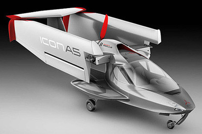 Đây là chiếc "xe bay" ICON A5, có giá 139,000, với thân làm từ sợi carbon, cánh có thể gập lại, động cơ bốn xilanh Rotax 912 công suất 100 mã lực, vận tốc cực đại đạt 196 km/h.