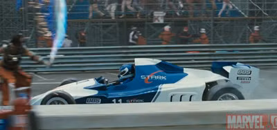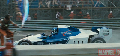 Đầu tiên là chiếc F1 của nhân vật chính, Tony Stark. Chiếc xe bạn thấy trên phim được lái bới tay lái đóng thế, MC của chương trình Top Gear Mỹ Tanner Foust. Đó là một trong hai chiếc có thể hoạt động được sản xuất riêng để phục vụ quá trình làm phim, và một trong 25 chiếc được làm cho những cảnh quay tại trường đua F1 Monaco.