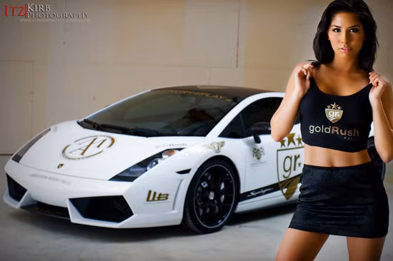 TPO - Người mẫu nóng bỏng trong trang phục bikini bên chiếc siêu xe Lamborghini Gallardo Superleggera nhằm cổ động cho cuộc đua xe đường trường GoldRush rally.