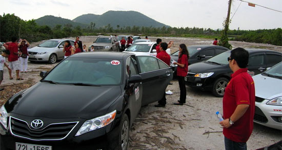 Khởi hành từ chiều tối ngày 3-3 vừa qua, đoàn caravan đã đến Châu Đốc để vía Bà (cúng Bà chúa xứ Châu Đốc). Sang ngày hôm sau tiếp tục di chuyển đến cửa khẩu Xà Xía, lưu lại khu resort Hà Tiên Vegas 5 sao ở phía cửa khẩu Prek Chack bên Camphuchia để thăm tỉnh Kampot và thành phố biển Kep tuyệt đẹp.