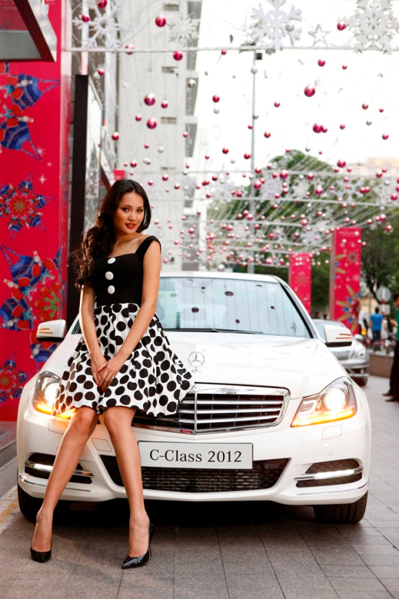 TPO – Hoa hậu Hương Giang lộng lẫy và kiêu sa tạo dáng bên những chiếc xe Mercedes-Benz chào đón mùa giáng sinh đang về.