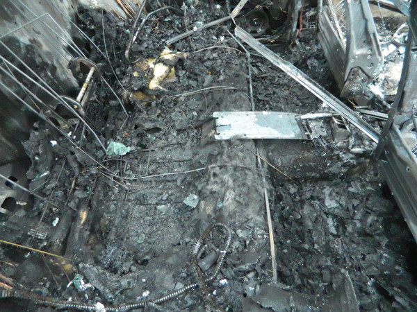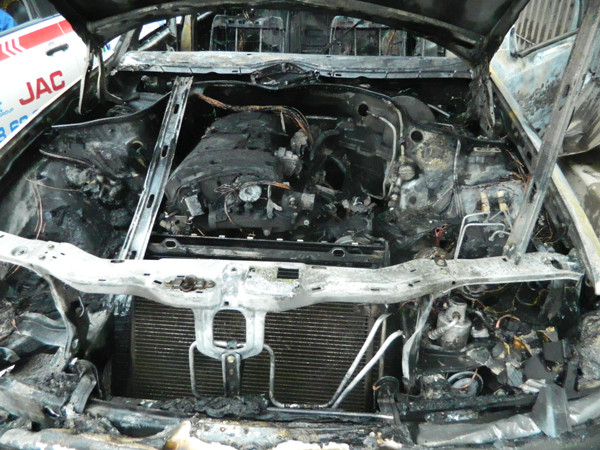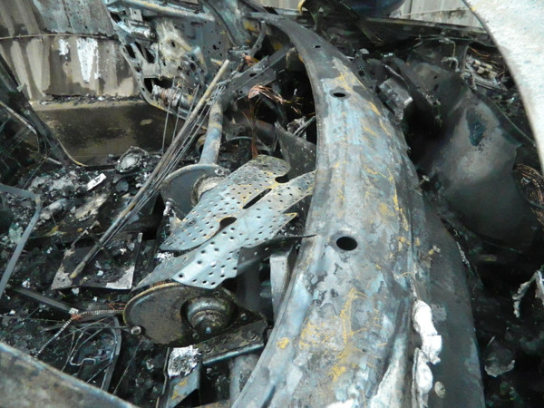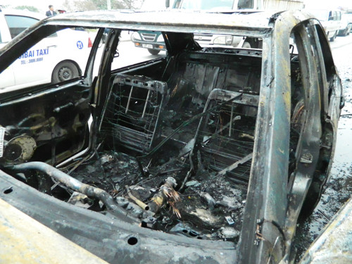 | Phần còn lại của chiếc Mercedes sau vụ cháy. Ảnh: Minh Đức |