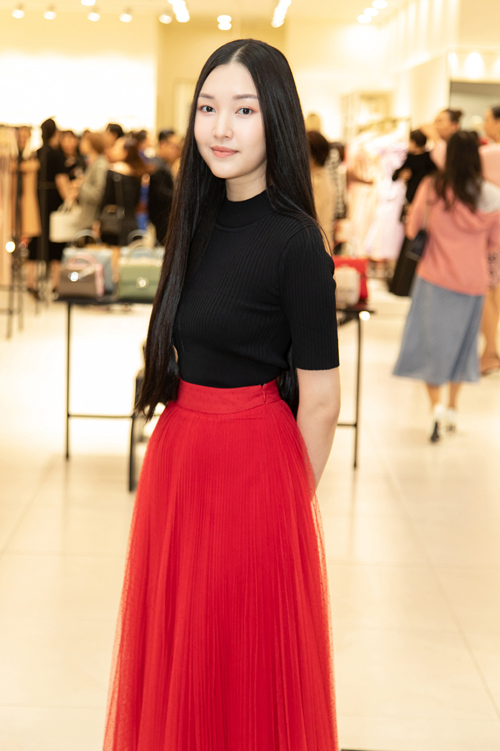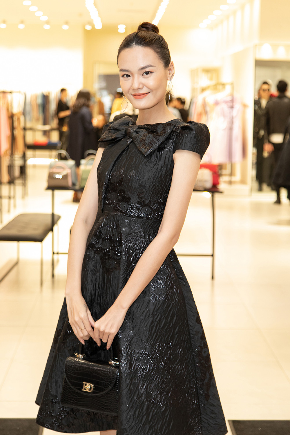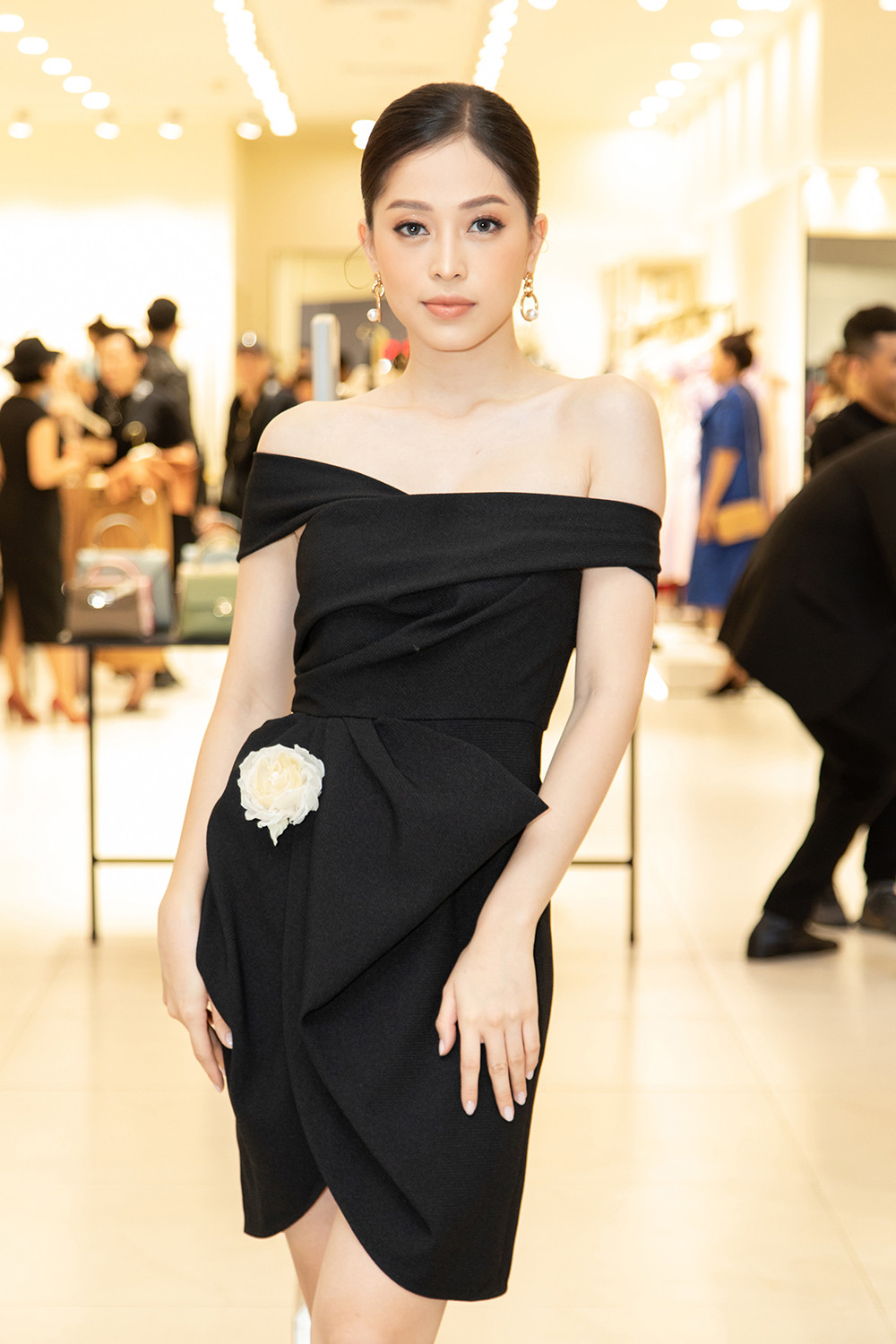 Sáng 28/11, Á hậu Phương Nga tới chúc mừng NTK Đỗ Mạnh Cường khai trương showroom mới tại Hà Nội. Cô diện thiết kế màu đen với điểm nhấn là bông hoa ở vòng eo cực kỳ thanh lịch.