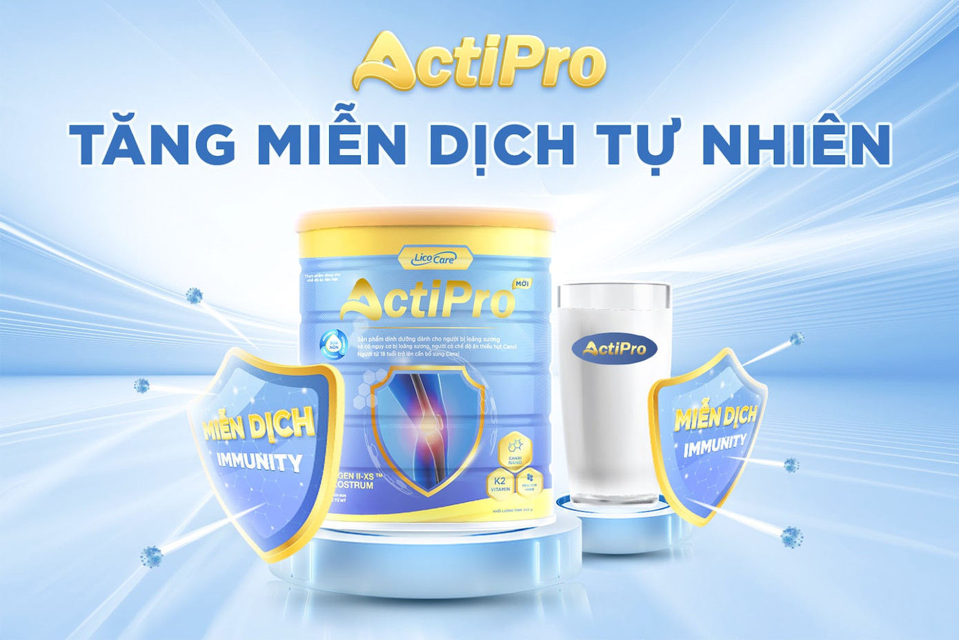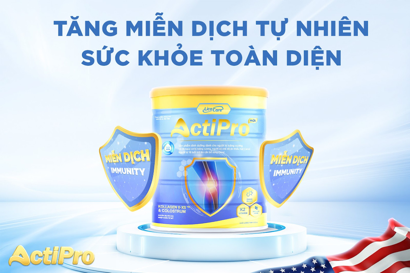 Sữa non tăng miễn dịch tự nhiên Actipro tự tin đảm nhận vai trò “tấm khiên” miễn dịch cho cơ thể. Sản phẩm dinh dưỡng này được nghiên cứu để phù hợp với cơ địa và thể trạng của người Việt, đặc biệt là người lớn tuổi, người mới ốm dậy, sau phẫu thuật hoặc những người có nhu cầu tăng cường hệ miễn dịch một cách tự nhiên và an toàn.