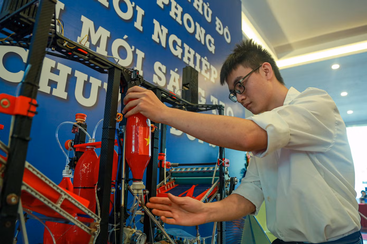 | Bạn trẻ trải nghiệm các mô hình, dự án, ý tưởng sáng tạo của Sinh viên Thủ đô. |