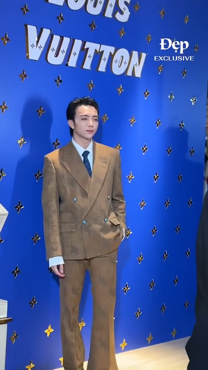 Dương Domic lần đầu tham dự sự kiện của nhà mốt xa xỉ. Tạo hình trang phục tông nâu be ấm áp cùng sắc vóc nổi bật của giọng ca Tràn Bộ Nhớ được khen ngợi. Thiết kế áo khoác trên người nam ca sĩ có giá hơn 245 triệu đồng, túi xách giá 51 triệu đồng.