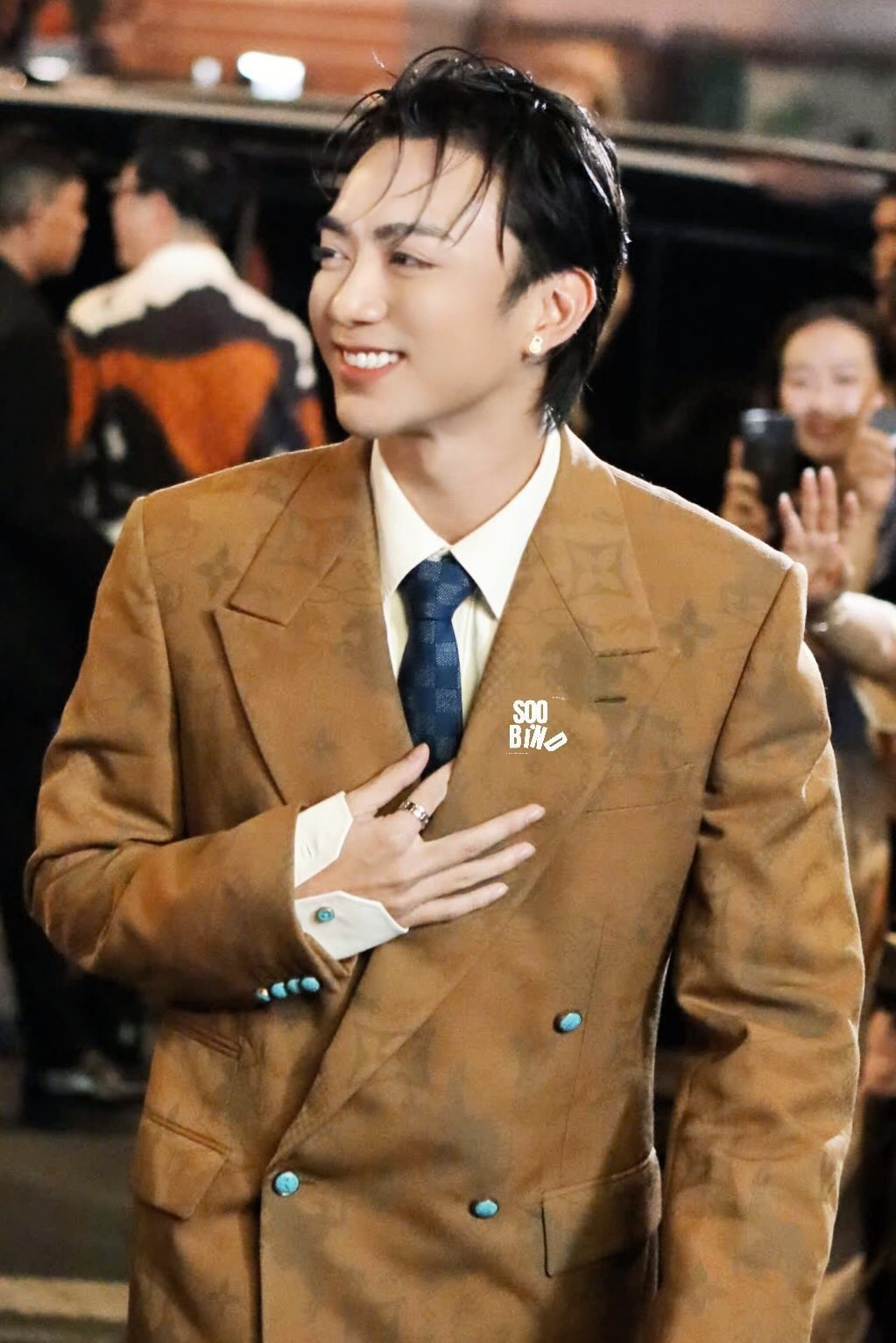 "Hoàng tử" SOOBIN thu hút ống kính nhờ vẻ điển trai trong âu phục tông màu nâu da bò, họa tiết logo thương hiệu. Trang phục đến từ BST Thu Đông 2024 của nhà mốt. Tạo hình có tổng giá trị hơn 200 triệu đồng.