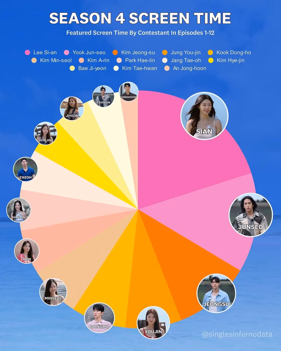 Lee Si An được nhận định là "át chủ bài" của Địa Ngục Độc Thân 4. Thời lượng lên sóng của Si An trong hành trình Single's Inferno 4 vượt mốc 120 phút/12 tập. Con số này vượt xa vị trí thứ 2 là Yuk Jun Seo - nam họa sĩ có gần 90 phút lên hình.