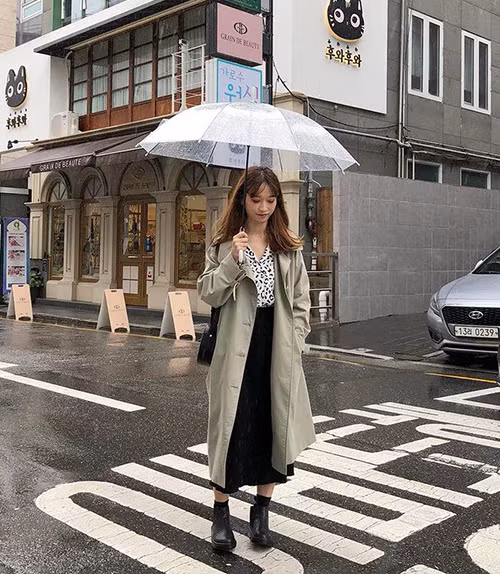 Với những chiếc chân váy dài đến bắp chân, bạn nên chọn áo khoác ngắn hơn khoảng 5-10 cm là hợp lý. Công thức này phù hợp cả với những nàng "nấm lùn" để tạo cảm giác cao ráo hơn, không lo trông quá nhỏ bé.