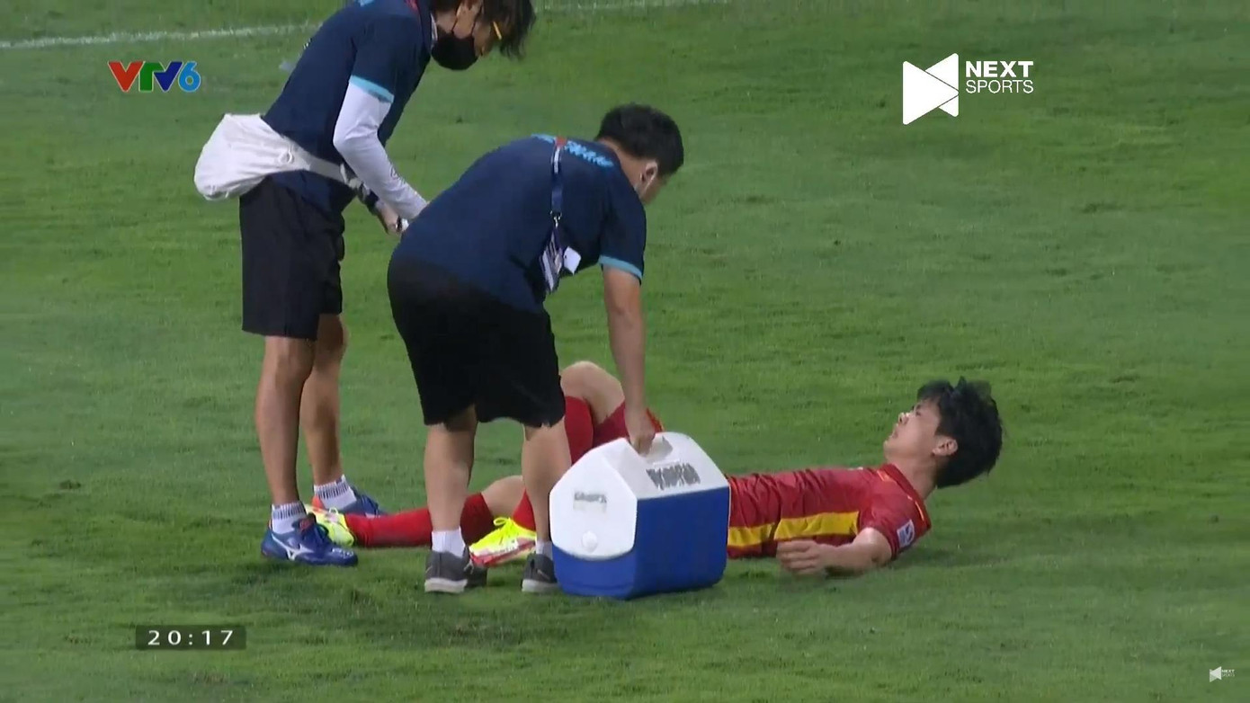 Đúng vào phút cuối cùng của hiệp 1, Công Phượng đã va chạm mạnh với Ricky Kambuaya và phải nhờ cậy sự chăm sóc của các bác sĩ. Sau giờ nghỉ, Công Phượng không trở lại sân đấu mà nhường chỗ cho Nguyễn Tiến Linh. Việc Công Phượng phải rời sân sớm khiến không ít người hâm mộ Việt Nam lo lắng.