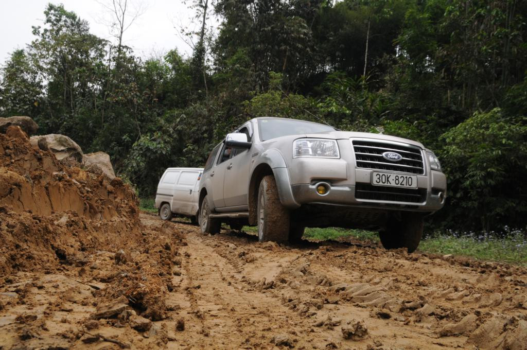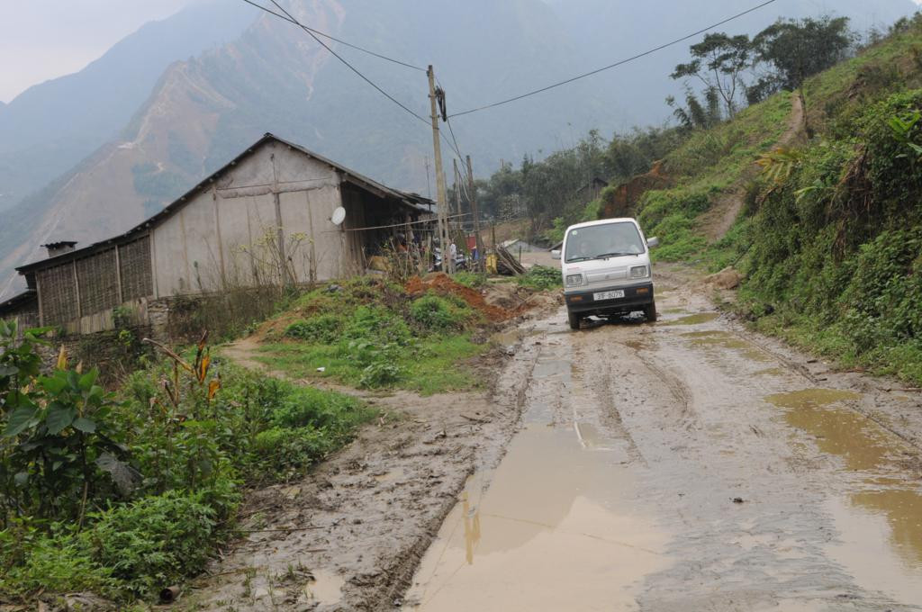 | Đường vào trường gập gềnh nguy hiểm. Không ít đoạn bùn đất lầy lội, xe rất khó vượt qua. |