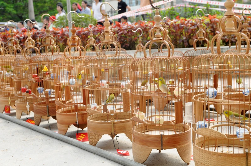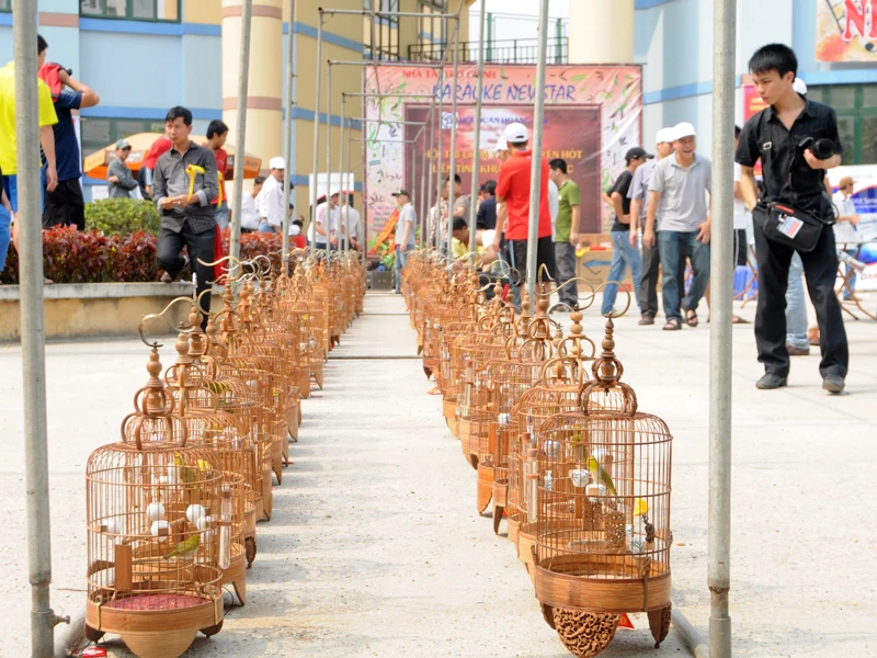 | Các chú chim trổ tài thi hót. Ảnh: Tuấn Nguyễn. |