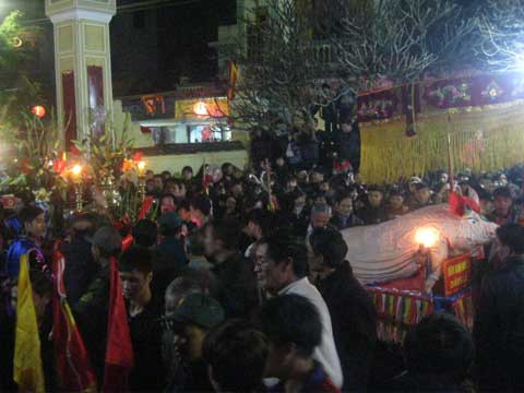 | Hàng nghìn người dân cùng khách thập phương chen chúc nhau xem lễ rước lợn. |