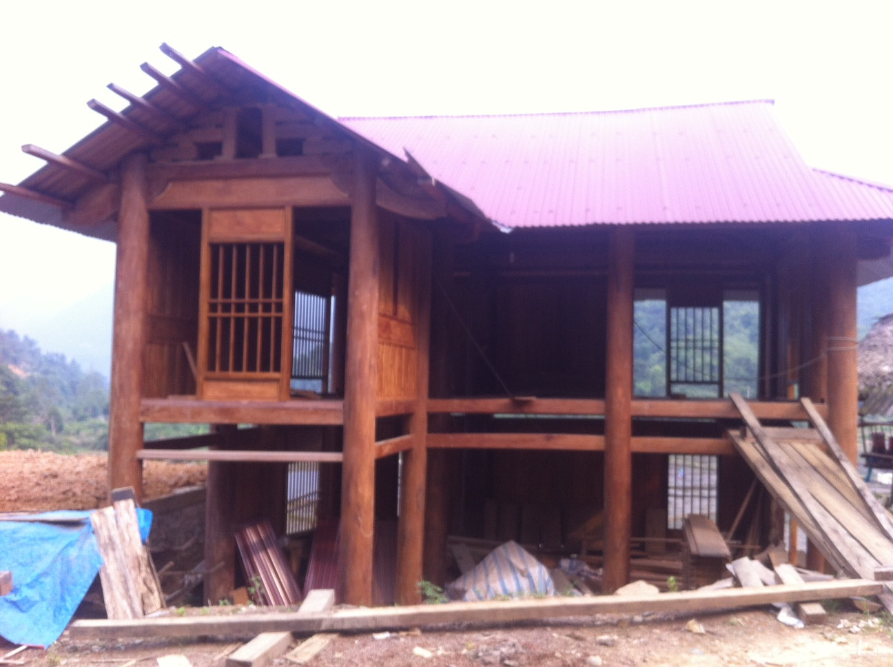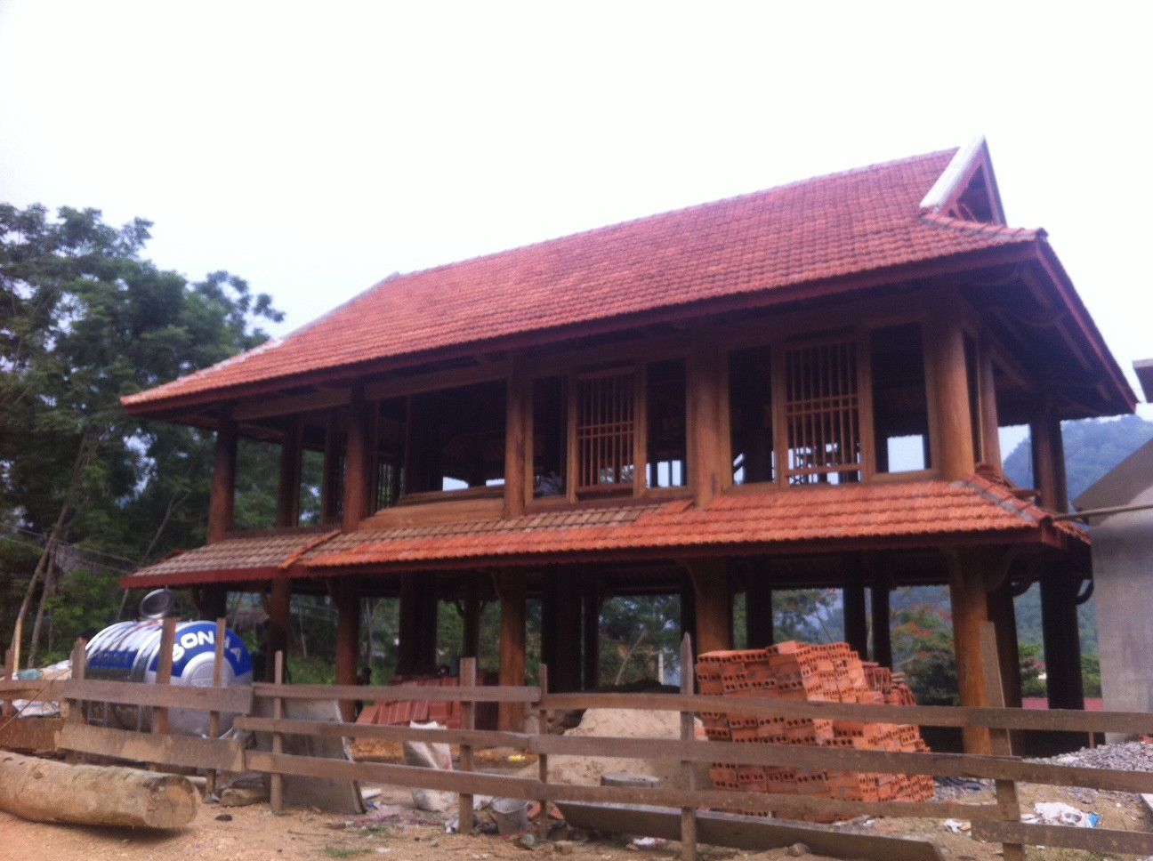 | Một số nhà sàn tại xã Bát Mọt đã và đang được xây dựng. Ảnh: Hoàng Lam. |
