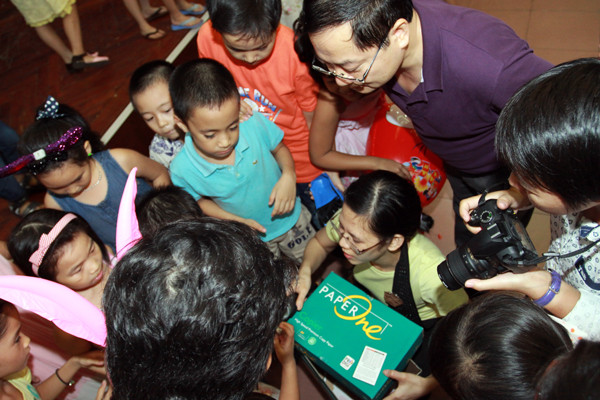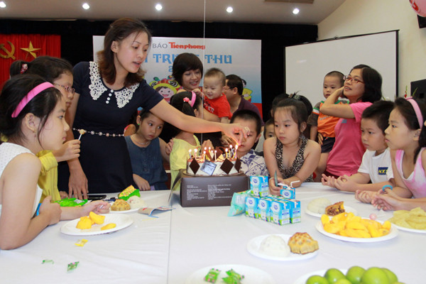 | Tổng biên tập báo Tiền Phong Lê Xuân Sơn cũng đến vui Trung Thu cùng các cháu nhỏ. |