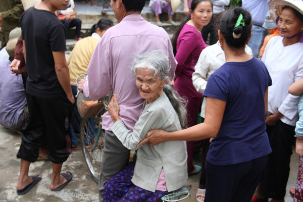 | Nhiều người cao niên, bệnh tật được con cháu đưa đến nhận quà cứu trợ. |