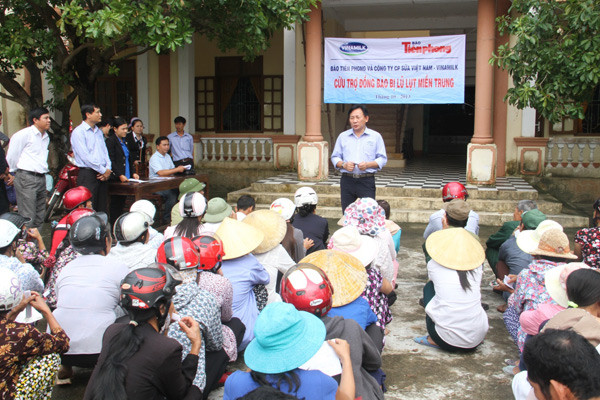Từ ngày 11 đến 15/10, Báo Tiền Phong và Công ty Vinamilk tổ chức cứu trợ, trao quà đến tận tay bà con bị thiệt hại nặng nề bởi bão lũ tại các tỉnh nói trên. Đoàn cứu trợ đến tăm và tặng quà bà con bị thiệt hại bởi cơn bão số 10 tại xã Lộc Thủy, huyện Lệ Thủy (Quảng Bình), quê hương Đại Tướng Võ Nguyên Giáp.