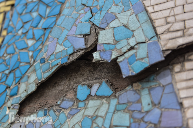 Công trình đang rơi vào tình trạng xuống cấp trầm trọng, xuất hiện nhiều vết rạn nứt, bong tróc lớn.