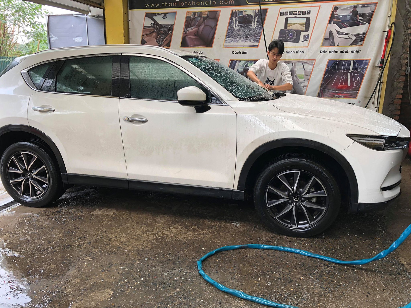 Nhiều gara, cửa hàng rửa xe huy động công nhân căng mình để phục vụ khách hàng.