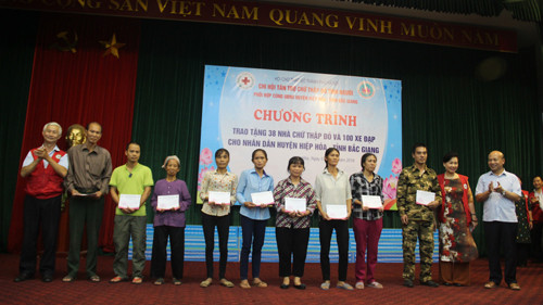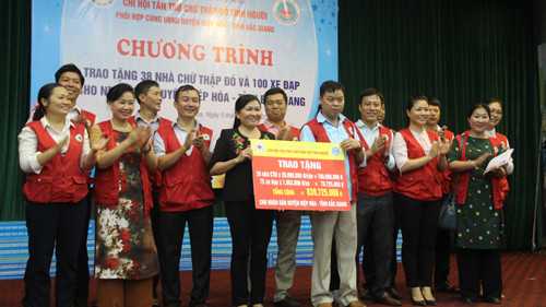 Trong đó huyện Hiệp Hòa hỗ trợ mỗi nhà trị giá 22 triệu đồng, Chi hội tán trợ Hội Chữ thập đỏ tình người Hà Nội hỗ trợ mỗi nhà 20 triệu đồng và lắp đặt toàn bộ điện, nước.